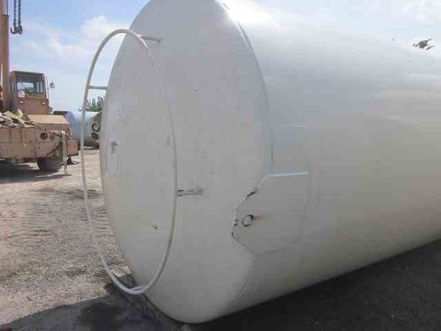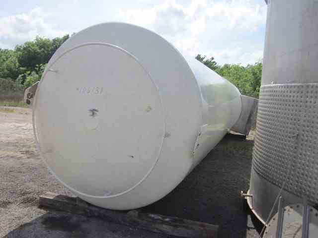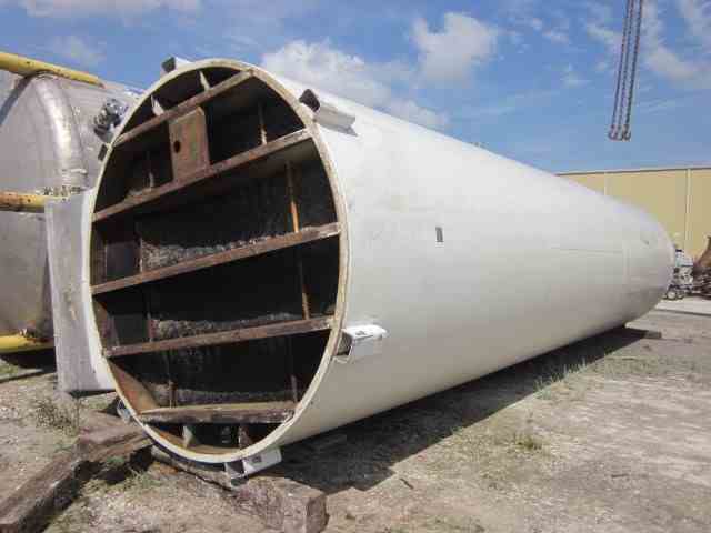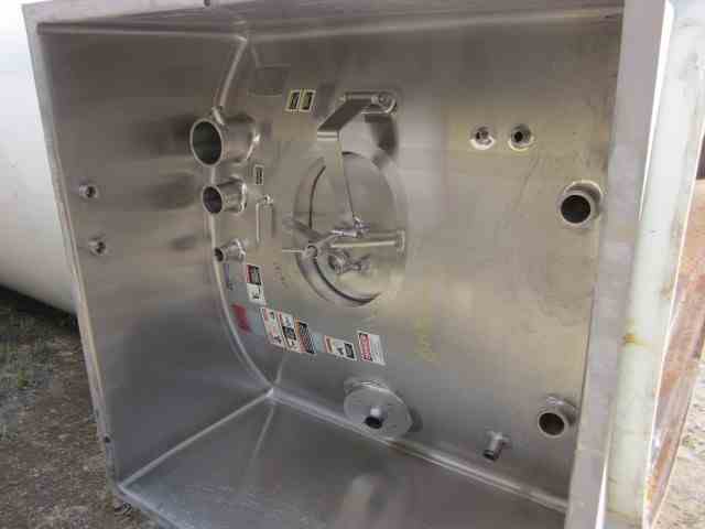 Used 9,700 GAL Walker 304 SS Polished (sanitary) Tank. 8'0" insulation wrapped OD x 33'10" OAL. Wall is 12 gauge thick. Dished top head, flat sloped bottom. Carbon steel outer sheeting. Bottom head supports. Double wall with 3” insulation & carbon steel outer insulation sheathing. 60.75” wide x 57.5” high x 22” deep aclove faceplate with extension. Nozzles: Sides 16”x 20” manway, .5”, 1.25”, 1.5”, 2”, 4”, 6”. Bottom (2) 3”. (2) Top mounted lifting lugs.