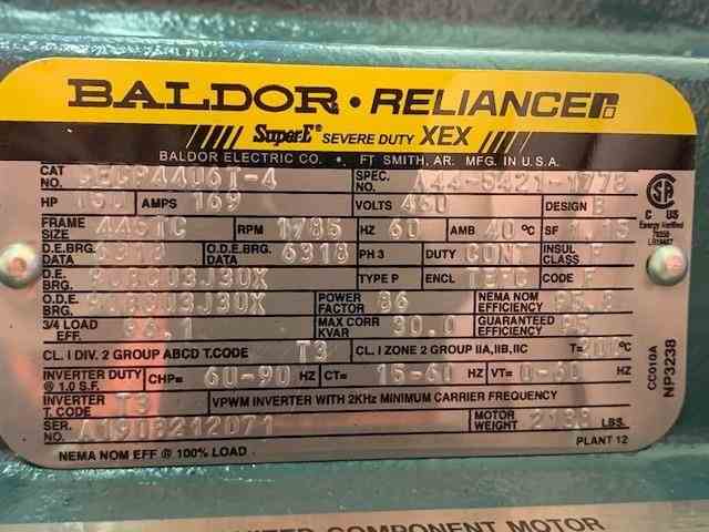 Used IKA Works Model MK 2000/50 Stainless Steel Inline Colloid Mill. Rotor speed 1265 RPM. Max throughput 80,000 L/hr. Driven by 150hp, 3/60/460 Volt, 1785 rpm TEFC Motor. 8" Inlet, 6" outlet. Flowserve 6L mechanical seal reservoir. Mounted on a painted carbon steel base. No Serial# plate. Current parts machine, can be completed for additional cost.