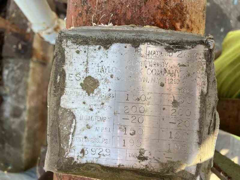 Used 91 Sq Ft 304L stainless Steel Shell and Tube heat exchanger. Manufactured by Taylor Tank Co. Inc. (40) .75" 304L SS Tubes MAWP 150PSI @200F. Carbon Steel shell MAWP 150 PSIG @200F. Serial #3929. National Board #2645. Built 2013.