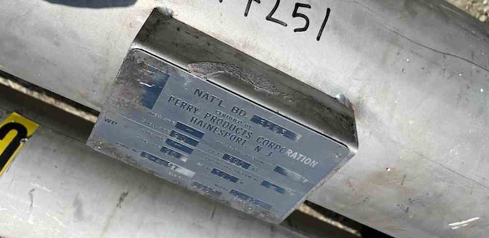 Used 92 Sq Ft 316 Stainless Steel Horizontal Shell and tube heat exchanger. Manufactured by Perry Products. 316SS Shell rated 90 psi @300F. (44) 1" dia 316SS tubes rated 90psi @300F. Serial #B-3887. National Board #3347.