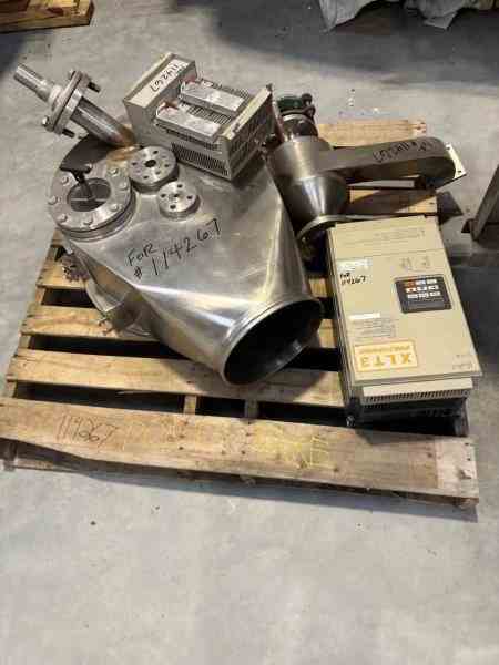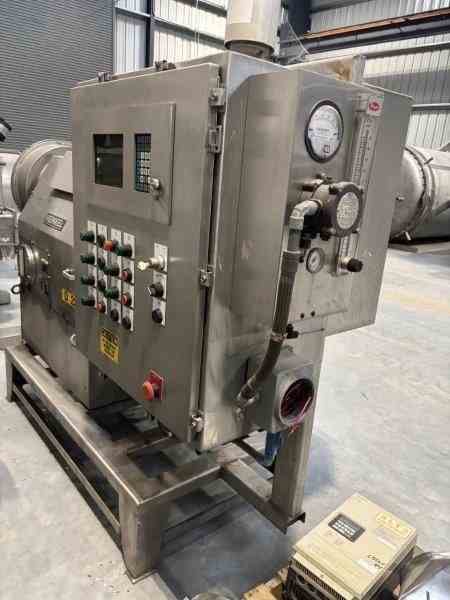 Used 300mm Dia 316 Stainless Steel Inverting Filter centrifuge. Manufactured by Heinkel. Model HF300. 300 mm (12") basket inside diameter. 2 cubic feet nominal basket volume. 1 sq ft basket area. Includes hydraulic pack. Serial #1031/12. Built in 1990.