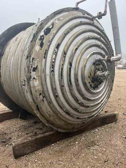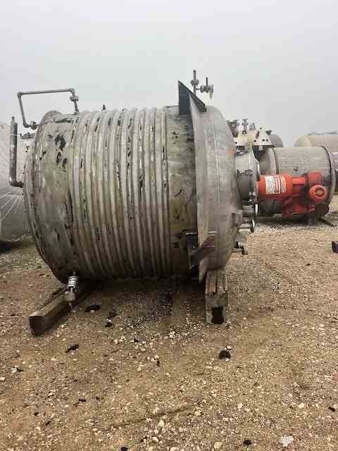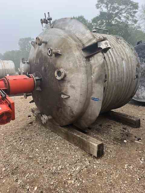 Used 2200 gallon 316L Stainless Steel processor. Built by Alloy Fab. Shell rated 15PSI@120F. 304 SS jacket rated 85PSI@120F. 10HP agitator. (4) Sidewall baffles. Dished Heads. (4) Lug mounted. Dims 7'Dia x 6' T/T. weight 5040 lb. Serial #1-172A. Built 2000. Past use Condensation Vessel