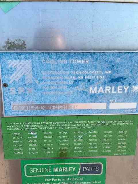 Used 695 Ton Stainless Steel Cooling Tower. Manufactured by SPX Marley. Model NC8409. 2085 GPM. 40 HP fans. Serial #NC-10111954-A1-NC-8409SM-15. Dims 22'5" x 14' x 12. 15000#