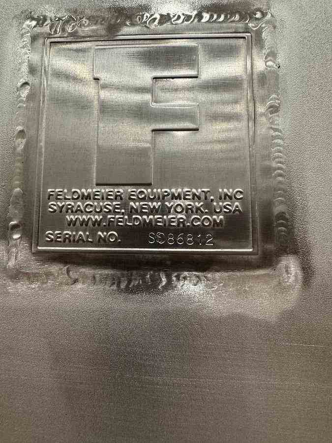 Used 10000 gallon 316L Stainless Steel vertical tank. Manufactured by Feldmeier. Model CVD. Rated ATM/FV@250F. Dished heads. 16" x 20" Manway. Off center top mounted agitation. CIP Ball. (8) Leg mounted. Serial #SS086812. Built 2012. Last use Beverages.