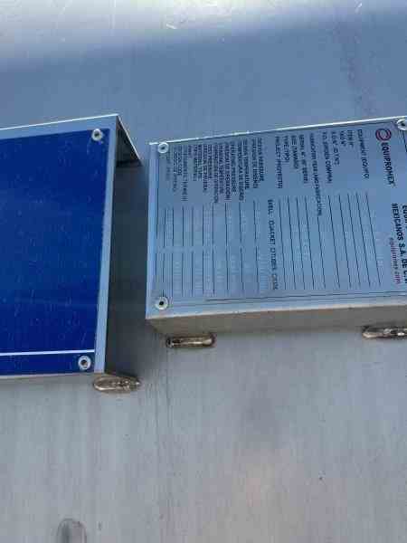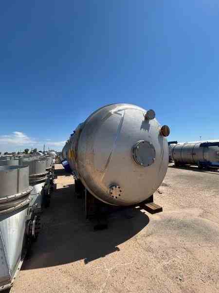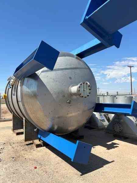 Unused 8901 gallon 304L Stainless steel vertical pressure vessel. Manufactured by Equipromex (Mexico). Internal rated ATM@306F. 316L SS Coil rated 87PSI/FV@380. Dims 10'OD x 12' T/T. Chemineer Agitator Model #12MRA-3, 3 hp, 1800 rpm input, 45 rpm output, 230/460 volts. Dished head and bottom. Leg mounted. 24" Manway with davit. 12768 lbs weight. Built 2022. Designed as Silica Reactor.