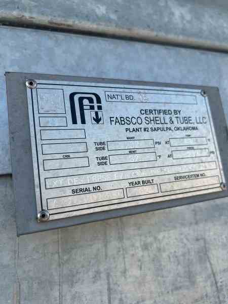 Unused 86425 sq ft carbon steel finfan heat exchanger. Manufactured by Fabsco. 4115 bare sq ft. 51.9 MMBTU/hr design duty.30'0" tube length. 325FV design pressure barg @ 600 deg. F. design temperature. Dimensions: 33'3" l x 14'5" w x 12'8" h, 68,403 lbs weight. Designed as Diesel Product Cooler. Under nitrogen purge. Built 2024.