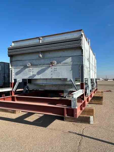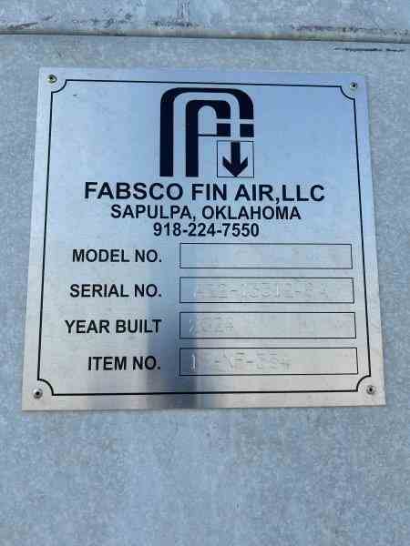 Unused carbon steel 2675 bare sq ft (56175 extended sq. ft.) finfan heat exchanger. Manufactured by Fabsco. 32.3 MMBTU/hr design duty.26'0" tube length. 250FV design pressure barg. @ 675 deg. F. design temperature. (2) 25 hp fans. Dimensions: 31'8" l x 14'4.875" w x 11'9.375" h, 57,486 lbs weight. Designed as Off-Spec Product Cooler. Built 2024. Under nitrogen purge.
