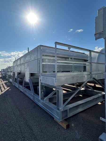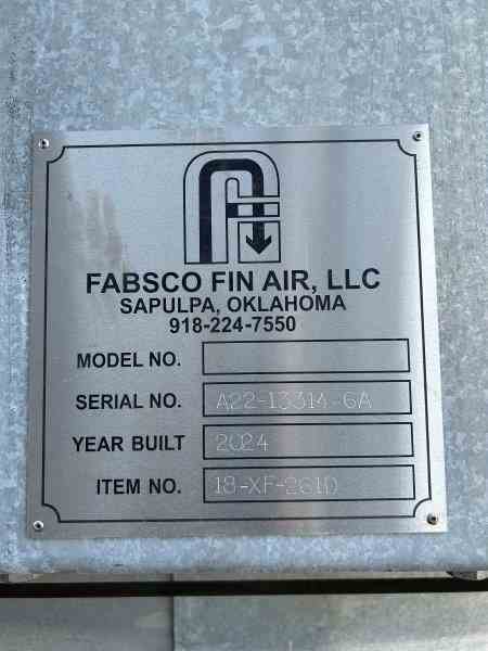 Unused Carbon Steel 48027 sq ft finfan heat exchanger. Manufactured by Fabsco. 2287 bare sq. ft. 41.1 MMBTU/hr design duty. 26'0" tube length. 135FV design pressure @300F design temperature. (2) 25HP fans. 336-1"od x .083"mw. (2)4" inlets and (2)4" outlets. Dimensions: 31'0" l x 12'8" w x 10'3" h (with Platform), 40,000 lbs weight. Designed as Lean Amine Coolers. Under Nitrogen Purge. Built 2024.