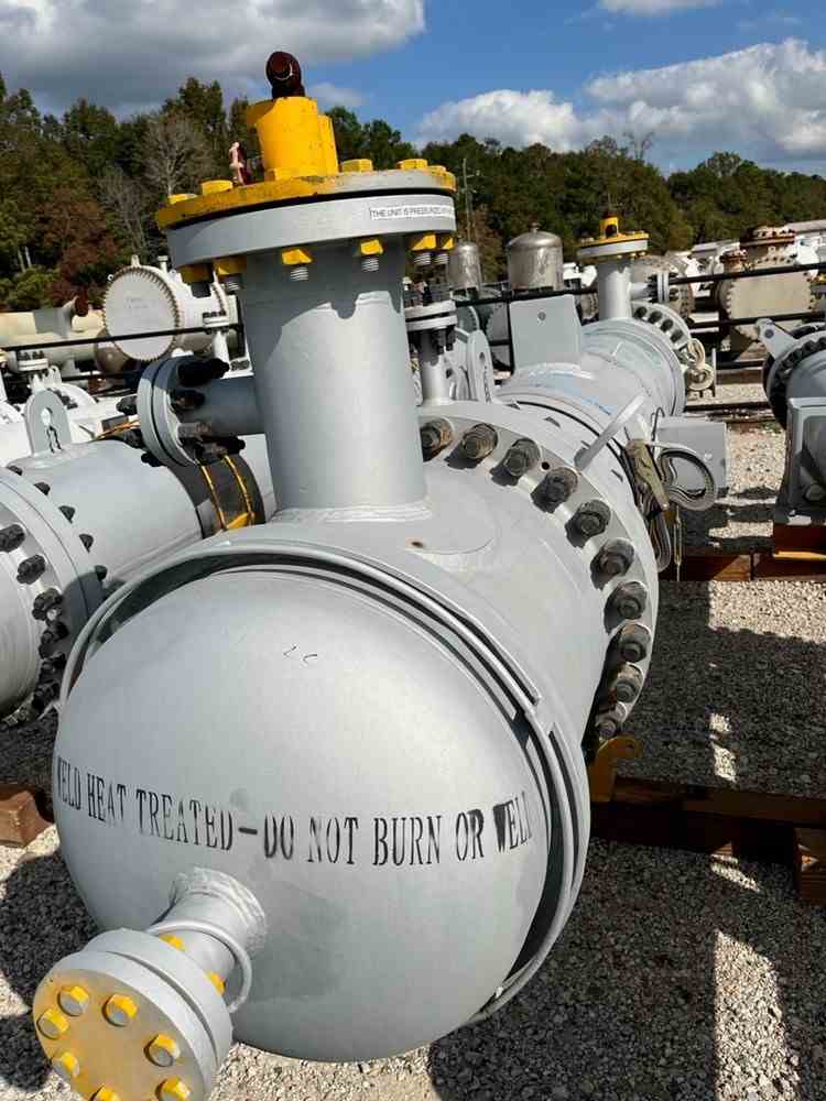 Unused 1055 sq. ft. carbon steel heat exchanger. Mfg. by Wuxi Chemical Equipment in 2023. 6.214 Design duty (MMBTU/Hr). Shell Design Rating: 232/FV psig @ 480 deg. F. Tube Design Rating: 200/FV psig @ 380 deg. F. Shell mawp 527.5/FV psig @ 430 deg. F. Tube mawp 379.6/FV psig @ 380 deg. F. 23.5" X 16'11". Serial # WHA22-086-1. National Board #563. Acid gas stripper reboiler. Under Nitrogen Purged.