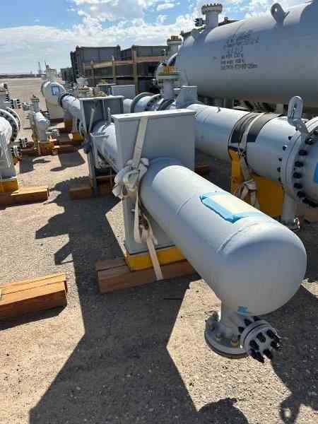 Unused 333 sq. ft. Duplex 2205 Stainless steel horizontal heat exchanger. 7.9 Design duty (MMBTU/Hr). Mfg. by Wuxi Chemical Equipment (China) in 2023. Shell Design Rating: 370/FV psig @ 300 deg. F. Tube Design Rating: 285/FV psig @ 330 deg. F. Shell mawp 662.3/FV psig @ 300 deg. F. Tube mawp 288.3/FV @ 330 deg. F. 15.5" X 16'7.5". Serial# WHA22-087-2-1-B. National Board #572. Feed/Effluent exchanger. Under Nitrogen Purged.