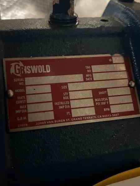 Home » Equipment » Pumps » Centrifugal - Stainless Steel » Griswold 125 GPM Stainless Steel Centrifugal Pump