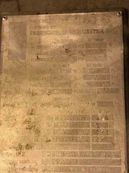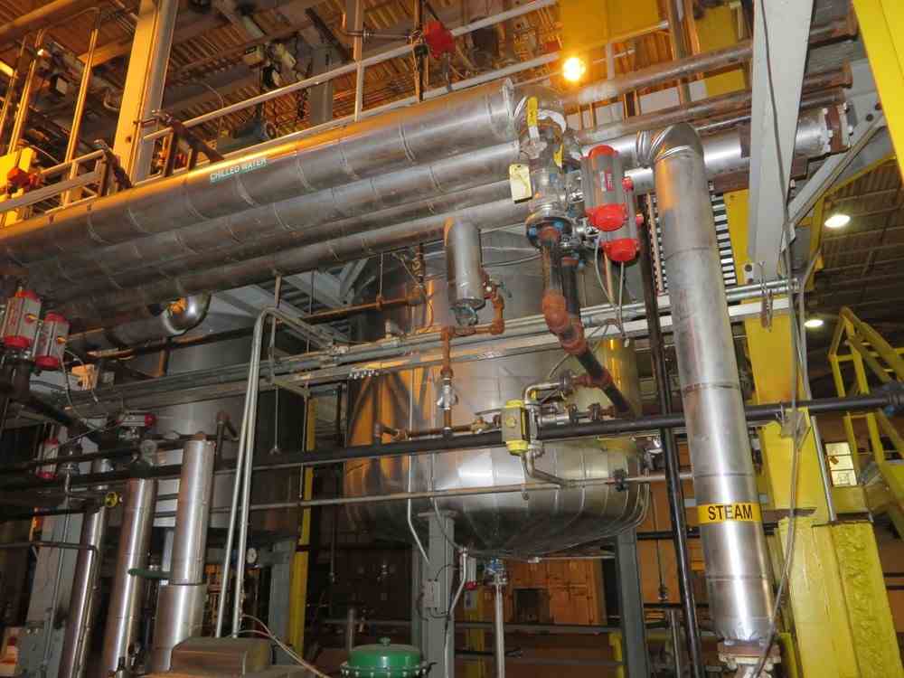 Used 2000 Gallon 316L stainless steel jacketed mixing tank. Manufactured by Fabrication Associates. Internal rated FV/75psi @400F. Jacket rated 90 psi @400F. Ekato agitator, Model HWL 2080.N, S/N: 97-93005128-0010, 10 HP drive motor, (2) 2-Blade Impellers with Flow Diverters on Tips, (no baffles on shell walls needed) Bottom Flat Scraper Blade. Vessel dims: 6'-6" Dia x 8'-0" Straight-Side of Shell. Dished Top & Bottom Heads. National Board #222. Serial W02-1095. Built 2002.