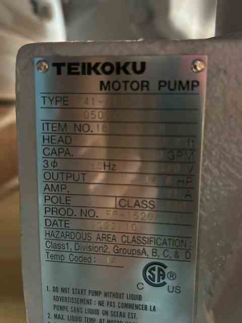 Home » Equipment » Pumps » Centrifugal - Stainless Steel » Teikoku 150 GPM Stainless Steel Centrifugal Pump