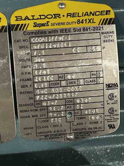 Unused 100gpm Horizontal DAF Float Transfer Rotary Lobe Pump. Mfg Vogelsang. Model IQ112-114. 100 gpm @ 88' head. Casing: 316LSS. Impeller: 316LSS. 7.5 HP motor.