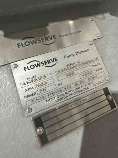 Unused 523gpm Alloy 600 PE Maturator Feed Pump. Manufactured by Durco (Flowserve). Model 4M223. 523 gpm @ 168' head. 306 deg. F. Casing: HC600. Impeller: HC600. 75 HP motor. Serial #2206ME003552-2.