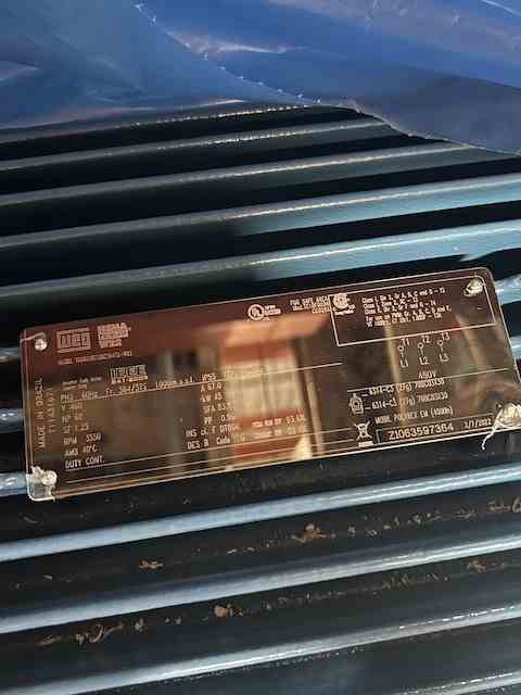 Unused 468 GPM 316SS Horizontal Centrifugal Pump. Mfg. by Durco (Flowserve). Model Mark III. 151' head. Size 2K4x3-10RV-8.25. Type MK3 STD. MDP 275 psi @ 100°F. 250°F. Casing: 316SS. Impeller: 316SS. 60 HP motor. Serial #1400944CHP017A. Designed as Enzyme Reactor Discharge Pump.