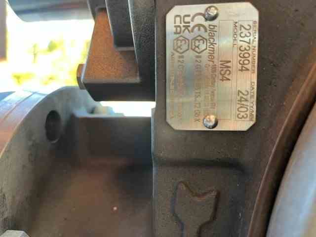 Unused 15 HP Stainless Steel Horizontal Positive Displacement Gear Pump. Mfg. by Blackmer (DXP). Model #MS4. 230 gpm. 5.47' head, 51.5 psi differential pressure. 160 deg. F. Casing 17-4PH Stainless Steel; Vance: Duravane Composite. 4" suction, 4" discharge. 6.65:1 gear ratio. 15 hp motor.Serial #2373994. Rail Unloading Pump.