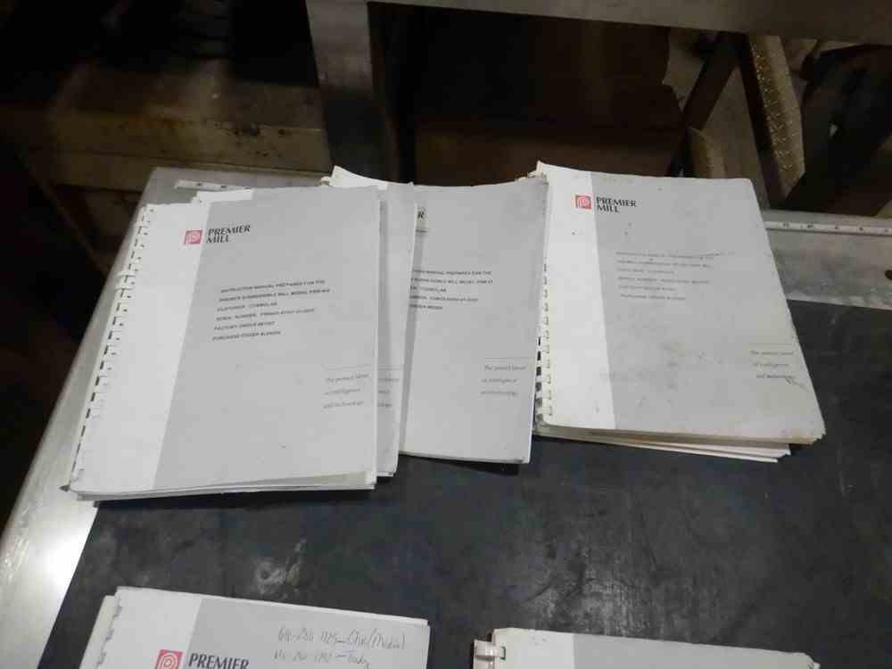Used 25 L (6.6 gal) Premier Submersible Media Mill. Manufactured by Premier. Model PSM25. Basket Type. Mill and mixer Motors with independent VFDs. Navigator control panel. Air/Oil lift. (2) change cans - wheel mounted. Serial #PSM25.92200.01.0026. Built 2001.