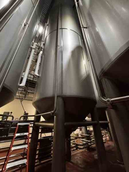 Used 16600 Gallon 304 Stainless Steel tank, jacketed, cone bottom. Manufactured by Mueller. Dished head. 10' 1 7/8" OD x 36' 11 3/8" Tall. Shell rated 15 psi @100F. Jacket rated 100 psi @100F. Weight 13200 lbs. Serial #167598-2 Previous use: 400 BBL Brewery Brite Tank.