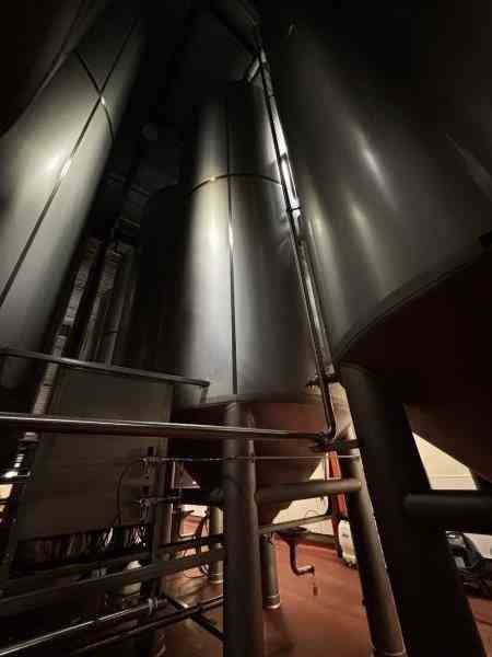 Used 16600 Gallon 304 Stainless Steel tank, jacketed, cone bottom. Manufactured by Mueller. Dished head. 10' 1 7/8" OD x 36' 11 3/8" Tall. Shell rated 15 psi @100F. Jacket rated 100 psi @100F. Weight 13200 lbs. Built 1995. Serial #164563-5. Previous use: 400 BBL brewery fermentation vessel.