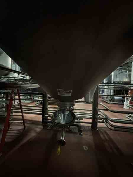 Used 30000 liter 304 Stainless Steel tank, jacketed, cone bottom. Manufactured by Mueller. Model F. 10' 2 5/16? OD x 22' 3 1/2? Tall. Internal 25PSI@100F. Cooling Jacket 100PSI@100F. Dome top. #384634-2. 250. Previous use: Brewery Brite Beer Tank.