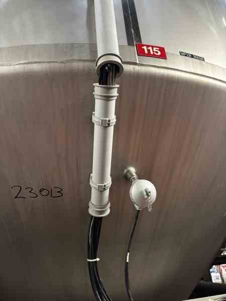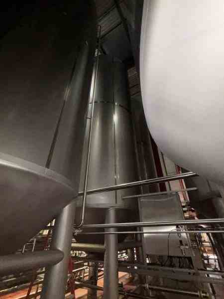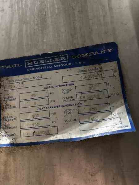 Used 16600 Gallon 304 Stainless Steel tank, jacketed, cone bottom. Manufactured by Mueller. Dished head. 10' 1 7/8" OD x 36' 11 3/8" Tall. Shell rated 15 psi @100F. Jacket rated 100 psi @100F. Weight 13200 lbs. Built 1995. Serial #164563-11. Previous use: 400 BBL brewery fermentation vessel.