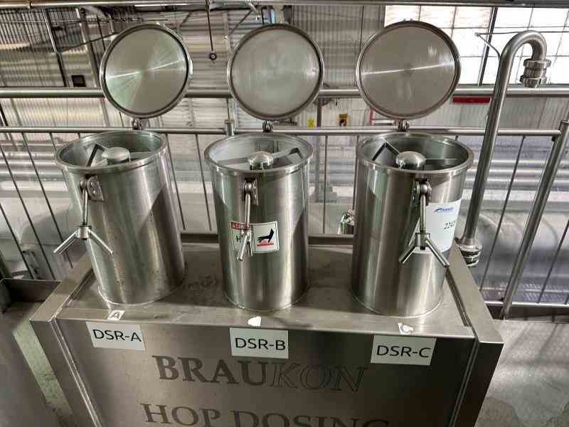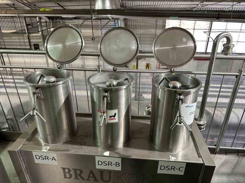 Used stainless steel three part hop dosing Equipment. Manufactured by BrauKon.