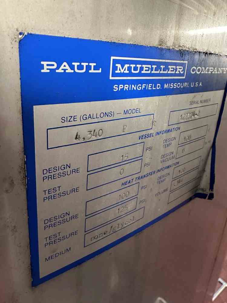 Home » Equipment » Tanks - Stainless Steel » Stainless Steel – 1,000 to 4,999 gal » 4340 Gallon Paul Mueller Stainless Steel Pressure Vessel