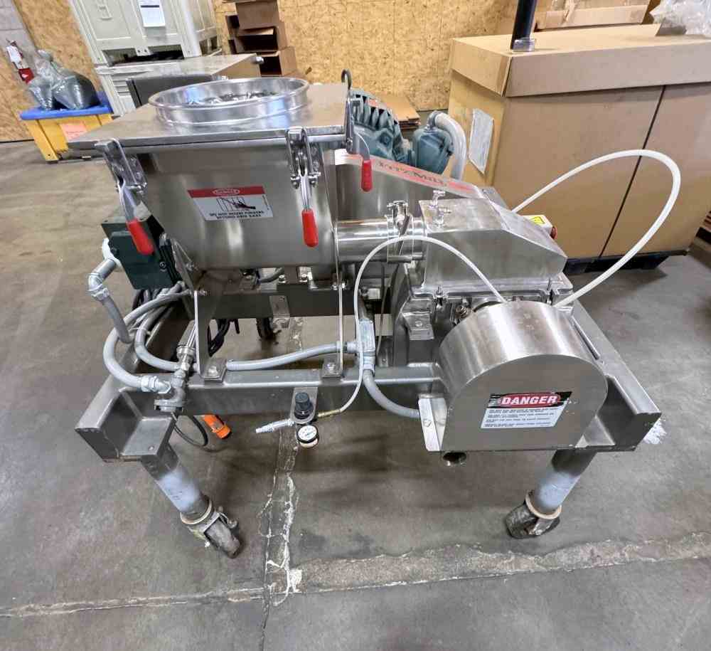 Used 15HP Fitzpatrick Comminutor Fitzmill. Model DKASO6. Stainless steel construction. Screw feeder with hopper. 15 HP explosion proof (XP) motor. Portable base on casters. Includes separate Control panel on casters. Serial# 11497.