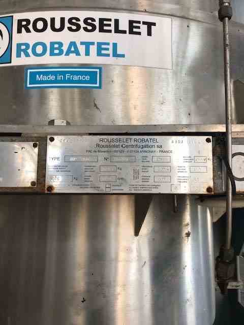 Used 40HP 316 Stainless Steel Single-Stage Extractor Podbielniak Centrifuge. Manufactured by Rousselet Robatel. Model BXP800. Bowl diameter 800mm. Max RPM 1400. Capacity 320 Liters. Serial #800349. Built 2015.