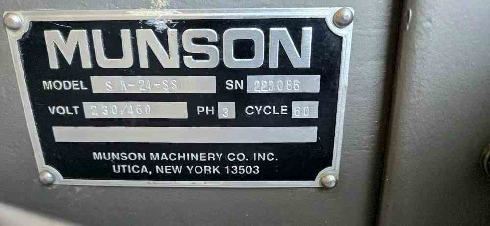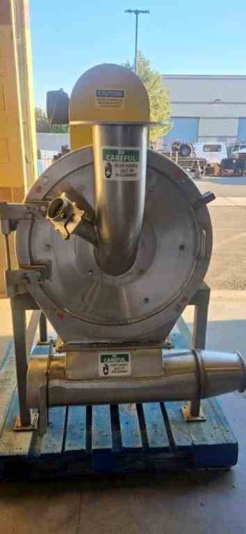 Used 20HP 304 Stainless Steel Attrition Mill. Manufactured by Munson. Model SK-24-SS. 6" diameter gravity fed inlet, with 3" diameter air inlet control with gate. 6" bottom outlet. 26" diameter chamber. 600 RPM rotor. Driven by a 20hp, 3/60/230-460V 1800rpm motor. Serial# 220086. Built 2023. Mounted on Carbon Steel Base