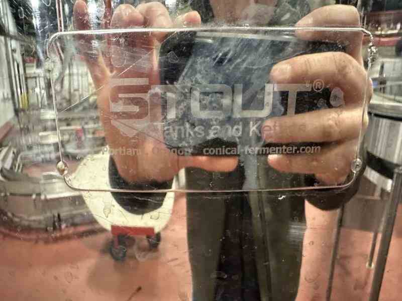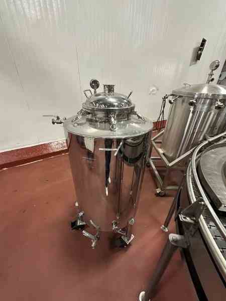 Used 100 gallon stainless steel pressure vessel on wheels. Built by Stout. Previously used in a brewery.