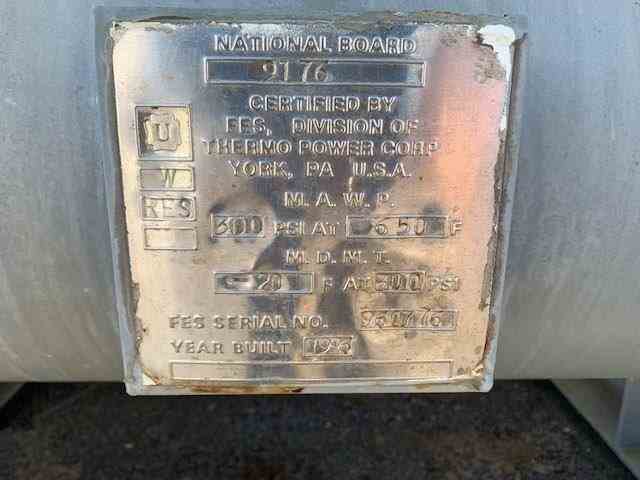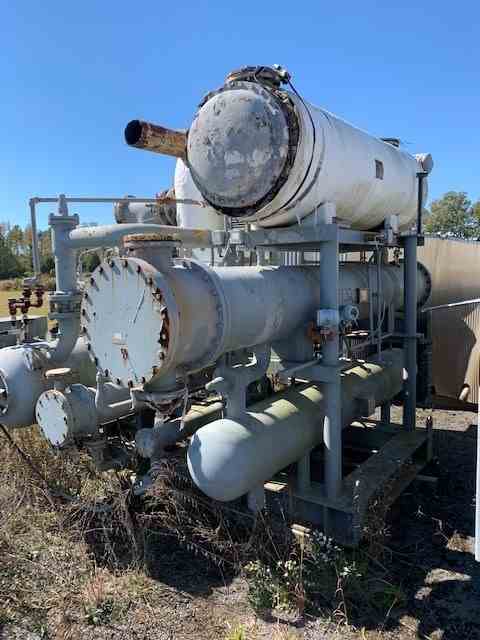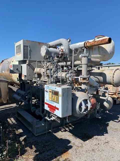 Used zero degree glycol chiller. 125 ton capacity. Manufactured by FES. Uses 1250 lbs if R-22 refrigerant.Rated 300 psi @400F. Skid mounted, includes FES digital micro control panel. 300 HP, 4160V and 3575 rpm motor for compressor. Serial #96423041. All built 1996.